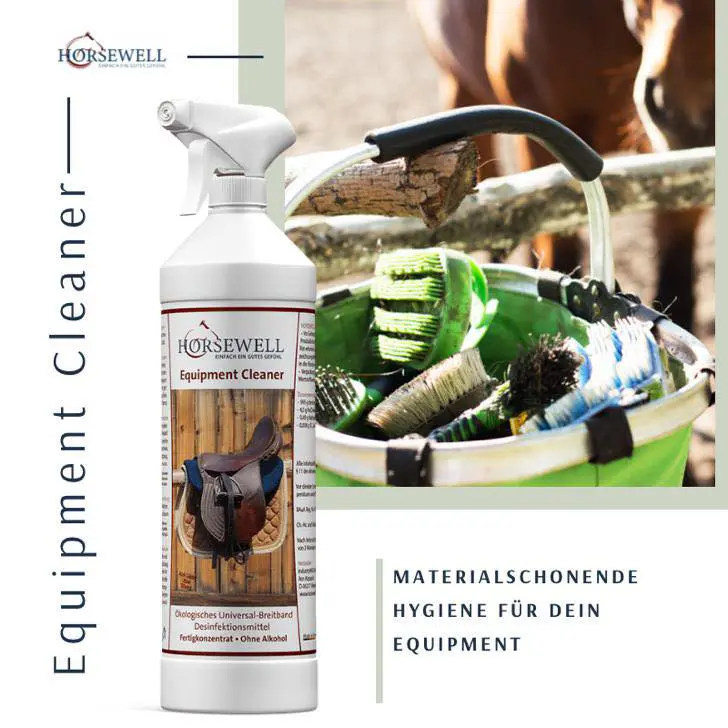Der HORSEWELL Equipment Cleaner ist hocheffizient und hinterläßt keinerlei Rückstände, die für das Pferd schädlich sind!